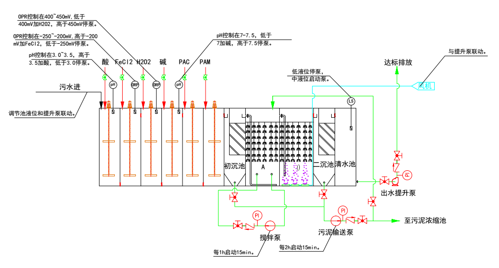 5、整個設備處理系統配有全自動電氣控制系統和設備故障報警系統,運行安全可靠,平時一般不需要專人管理,只需適時地對設備進行維護和保養。