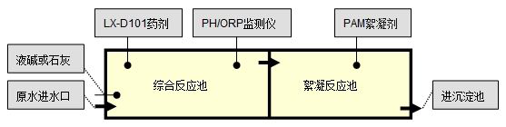綜合廢水使用我公司LX-D101電鍍廢水處理劑處理后達(dá)標(biāo)排放,以下是該公司綜合廢水處理工藝流程圖: