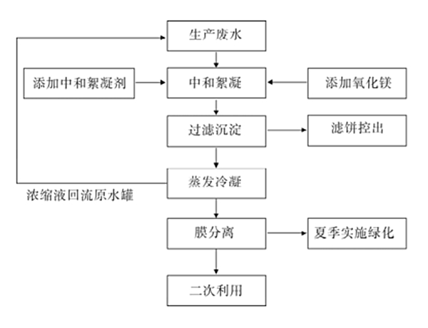 2、蒸發(fā)段工藝。中和槽濾液送往高效蒸發(fā)器,濾液蒸發(fā)濃縮,進(jìn)人中和池。